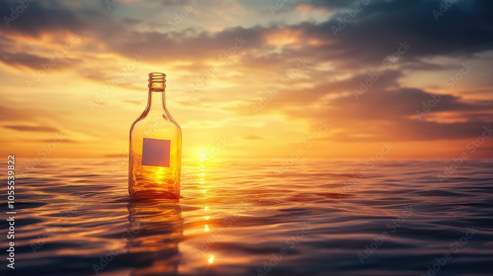 Golden Sunrise Shining Through A Bottle On A Serene Beach