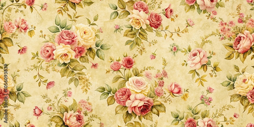 Vintage Floral Pattern With Roses On A Yellow Wallpaper Mural - Decorly Solutions | Decorly Solutions