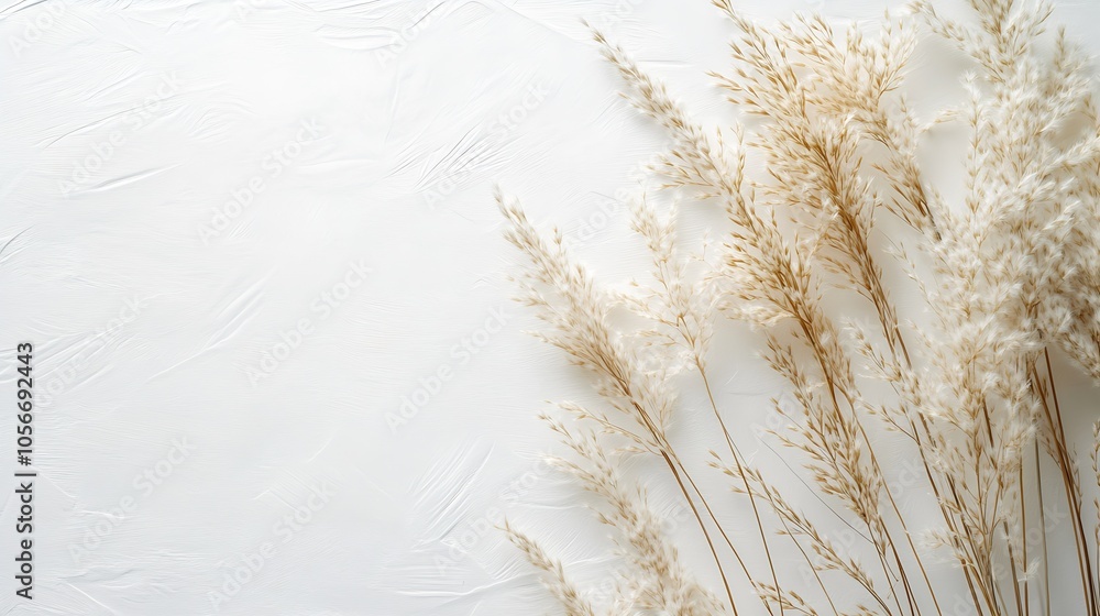 Serene White Background with Dry Pampas Grass for Rustic Min Wallpaper
