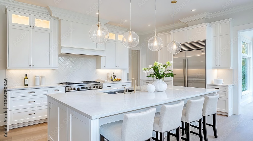 Modern Kitchen With Sleek Cabinets Luxury Finishes Marble Wallpaper Mural - Decorly Solutions | Decorly Solutions