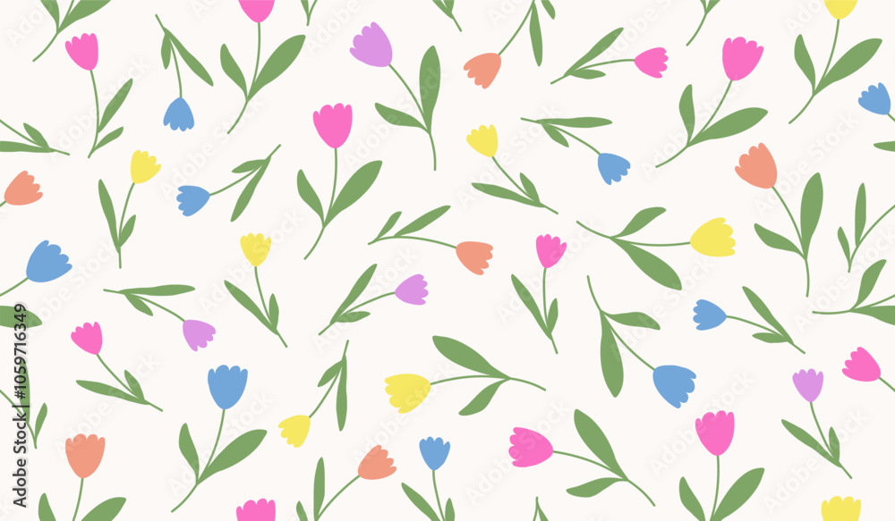 Cute Tulips Pattern Background Vector Design Wallpaper Mural - Decorly Solutions | Decorly Solutions
