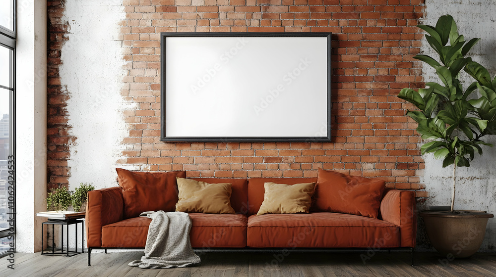 A Horizontal Black-framed Mirror Mounted On A Red Wallpaper Mural - Decorly Solutions | Decorly Solutions