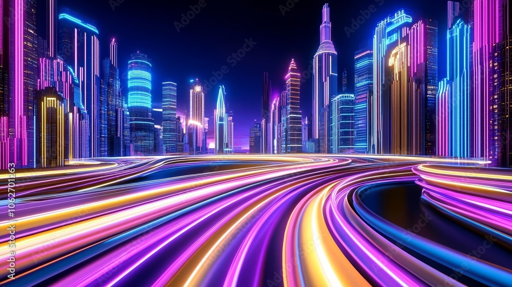 Abstract Cityscape Illuminated By Radiant Neon Lights With Wallpaper Mural - Decorly Solutions | Decorly Solutions
