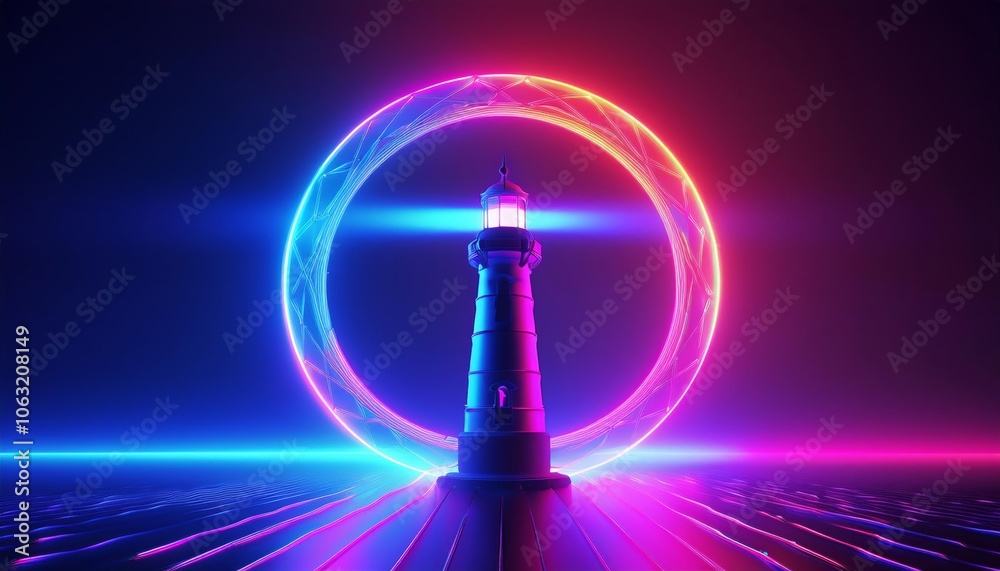Futuristic Lighthouse Surrounded By Glowing Neon Ring And Wallpaper Mural - Decorly Solutions | Decorly Solutions