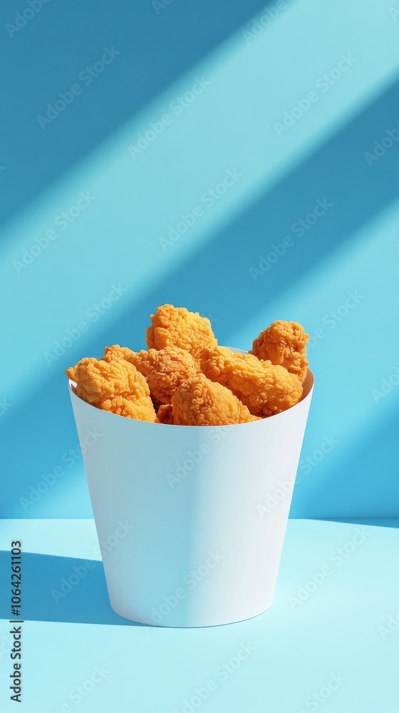 Crispy Chicken Bites Overflowing From A White Paper Bucket On A Seamless Background Studio Shot Food Photography