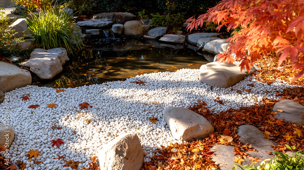 Japanese Zen Garden With Rocks Pond And Autumn Wallpaper Mural - Decorly Solutions | Decorly Solutions