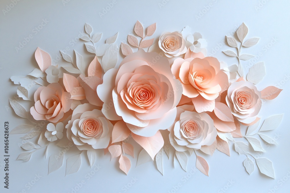 Soft Paper Bouquet of Roses and Leaves Wallpaper