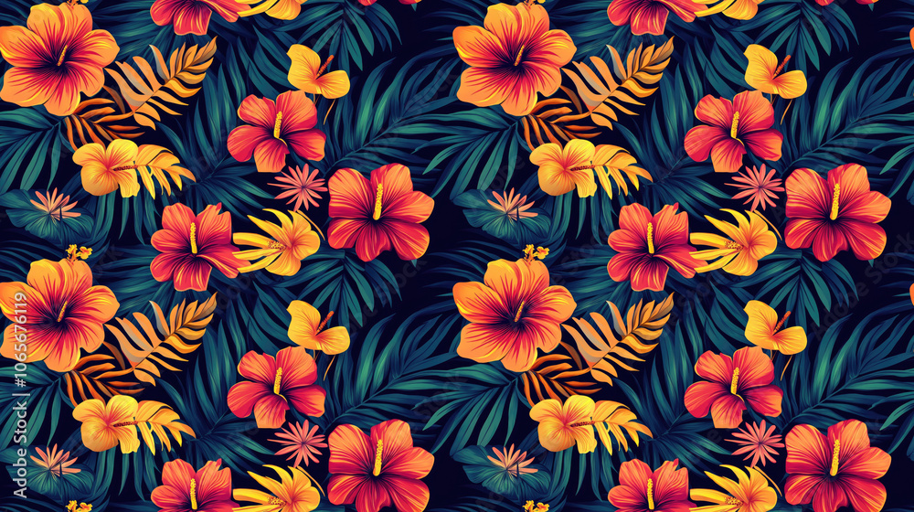 Vibrant tropical floral seamless pattern perfect for fabric Wallpaper