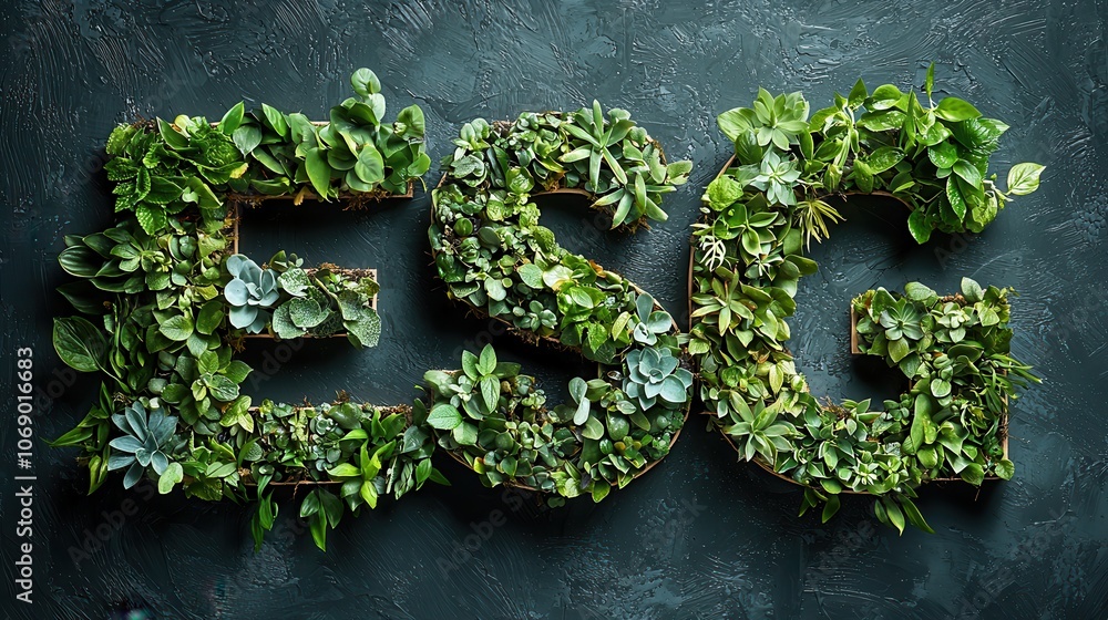 Green Esg Letters Made Of Succulents And Plants Wallpaper Mural - Decorly Solutions | Decorly Solutions