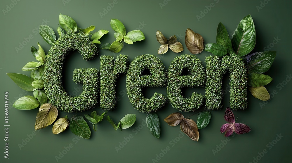 Green Lettering Made Of Fresh Leaves And Foliage Wallpaper Mural - Decorly Solutions | Decorly Solutions
