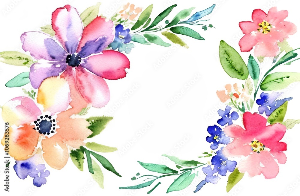 Watercolor flowers for postcard template decorative wreath o Wallpaper