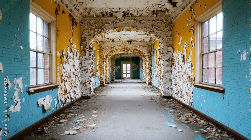 Abandoned Hallway With Peeling Paint And Glimmer Of Wallpaper Mural - Decorly Solutions | Decorly Solutions