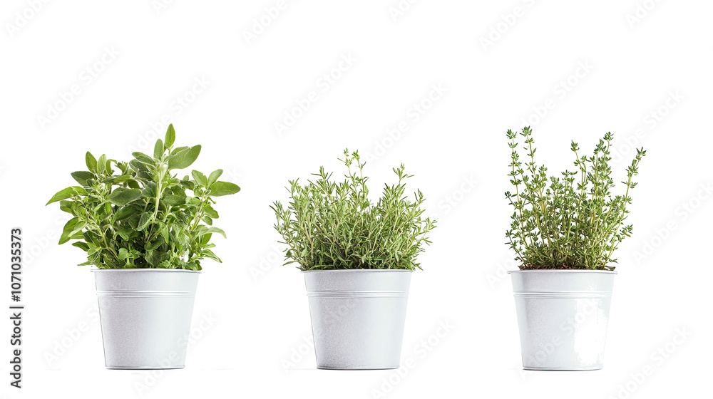 Green Herbs In White Pots Isolated On A Wallpaper Mural - Decorly Solutions | Decorly Solutions