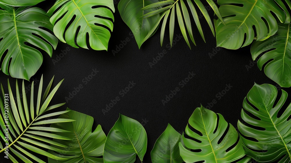 Tropical Leaf Frame Black Background Green Foliage Border Wallpaper Mural - Decorly Solutions | Decorly Solutions