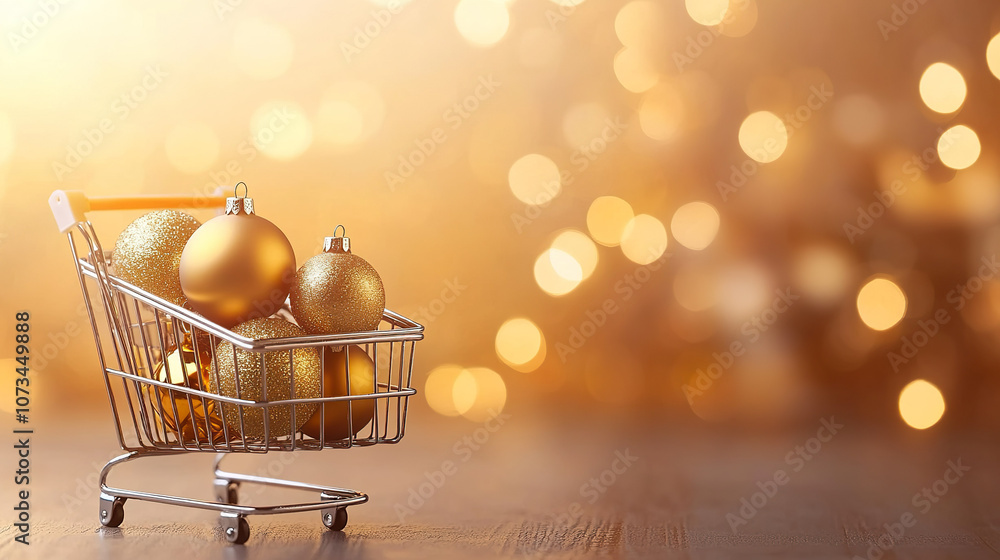 Small Shopping Cart Filled With Golden Christmas Ornaments Wallpaper Mural - Decorly Solutions | Decorly Solutions