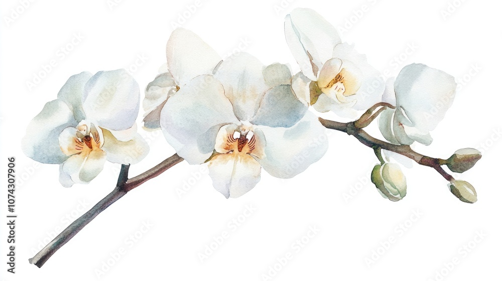 Hand Painted Watercolor Illustration Of A White Orchid Wallpaper Mural - Decorly Solutions | Decorly Solutions