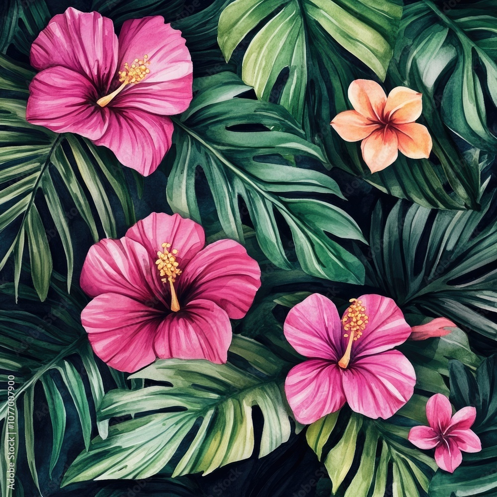 Exotic Tropical Botanical Wedding Invitation Template With Watercolor Wallpaper Mural - Decorly Solutions | Decorly Solutions