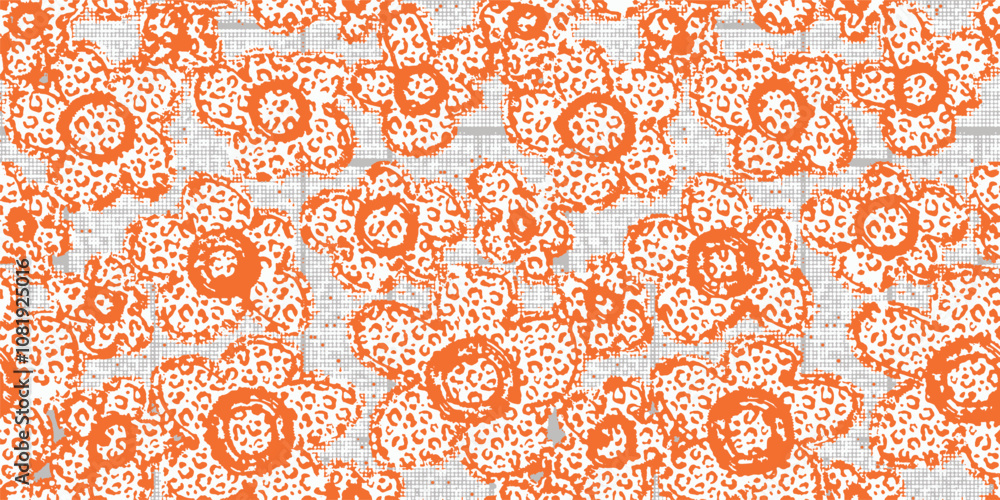 Abstract geometric seamless pattern with blots and an effect of attrition in retro colors. Vector shabby geometric carpet. Background for ceramic tile, wallpaper, linoleum, textile, rug, web page
