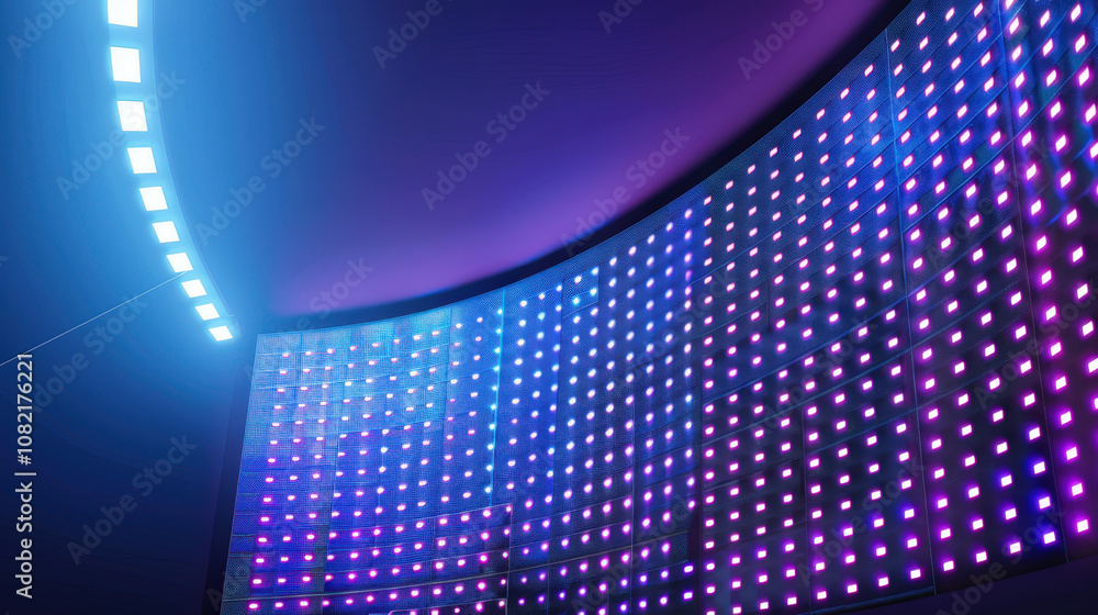 Front View Of A Curved Led Light Display Featuring Vibrant Alternating Blue And Pink Lights The Dots Of Light Create A Smooth Gradient Effect