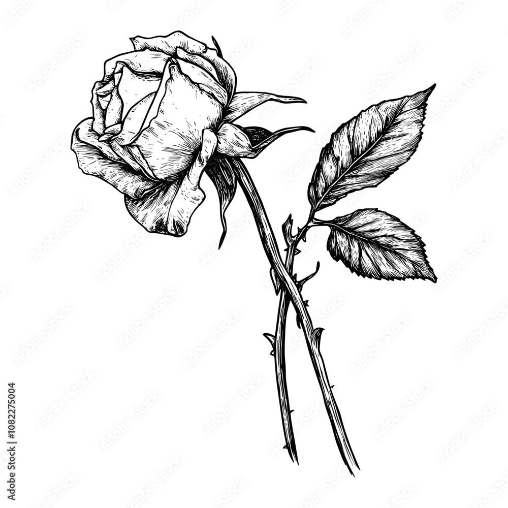 Wilted Rose Sketch Engraving Vector Illustration T-shirt Apparel Wallpaper Mural - Decorly Solutions | Decorly Solutions
