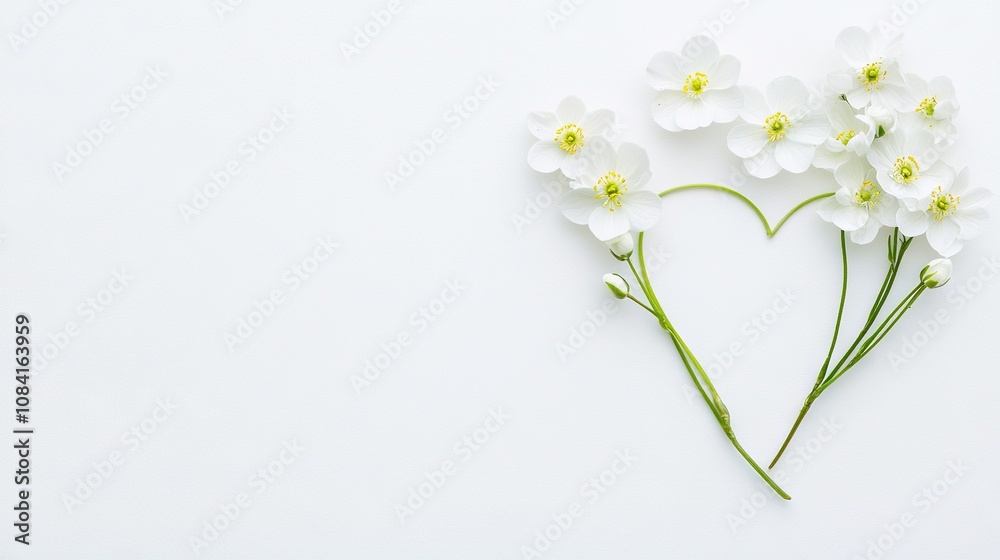 A heart-shaped arrangement of white flowers on a white backg Wallpaper