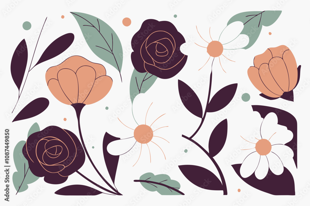 Floral design elements spring flowers cute blossoms botanical illustrations pastel colors simple line art flower clipart printable flowers digital flowers vector graphics nature illustration wedding .