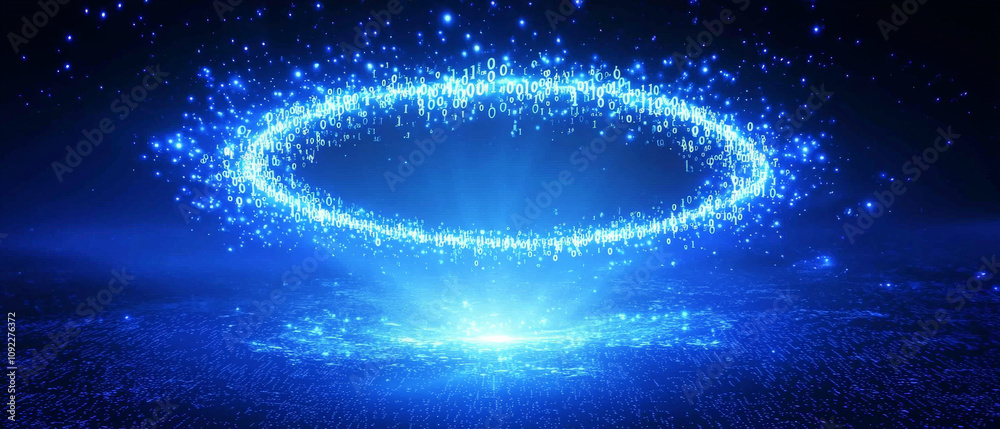 Glowing blue digital vortex with binary code creating mesmer Wallpaper
