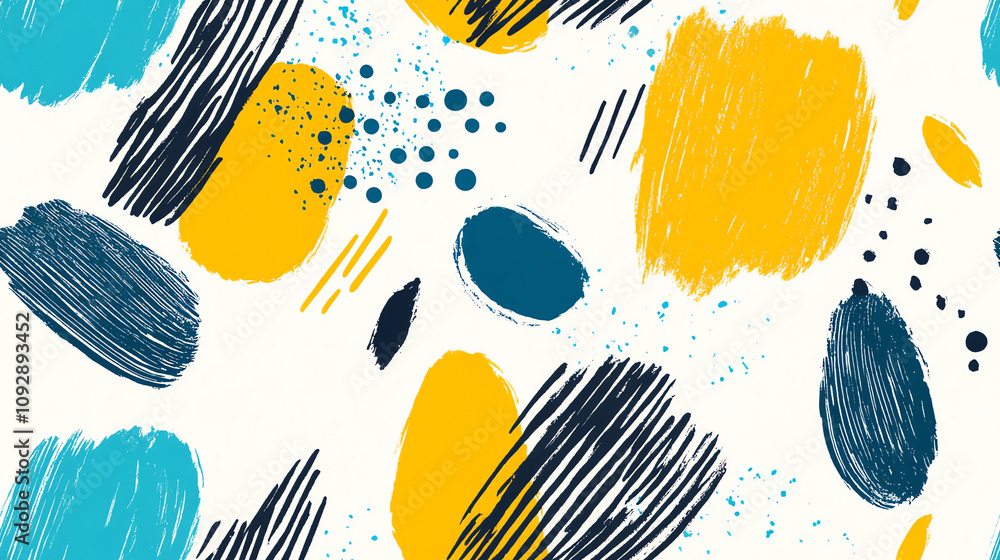 Abstract Brushstrokes Seamless Pattern In Yellow And Blue Wallpaper Mural - Decorly Solutions | Decorly Solutions