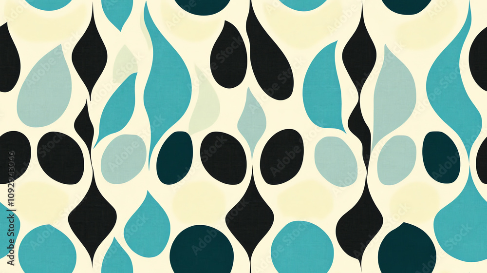 Retro Organic Shapes Seamless Pattern In Blue Tones Wallpaper Mural - Decorly Solutions | Decorly Solutions