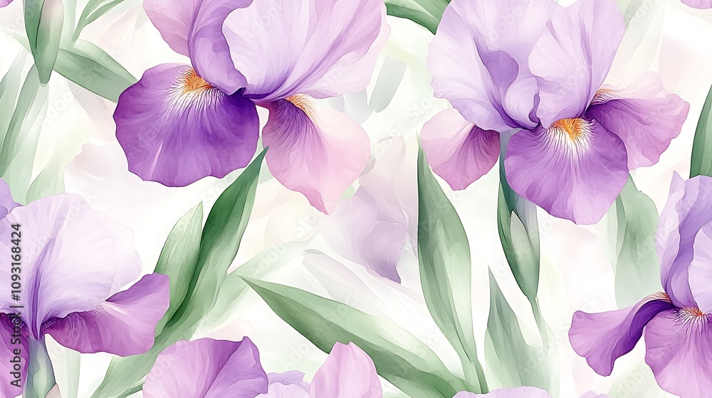 Seamless Pattern Of Pastel Watercolor Irises Soft Flowing Wallpaper Mural - Decorly Solutions | Decorly Solutions