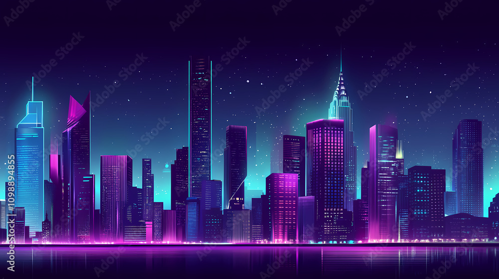 Neon City Skyline at Night