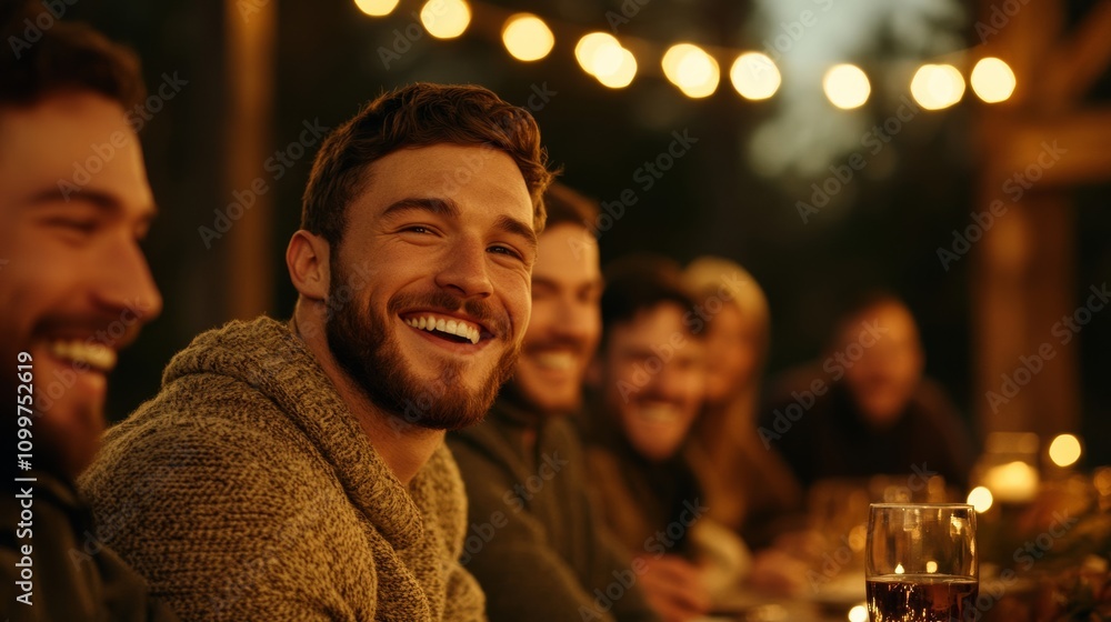 Friends Gathered Around A Long Rustic Table Laughing Wallpaper Mural - Decorly Solutions | Decorly Solutions