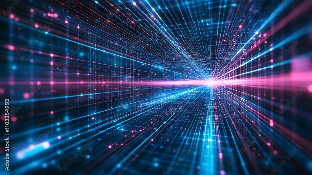 Futuristic Grid Design With Neon Blue And Pink Wallpaper Mural - Decorly Solutions | Decorly Solutions