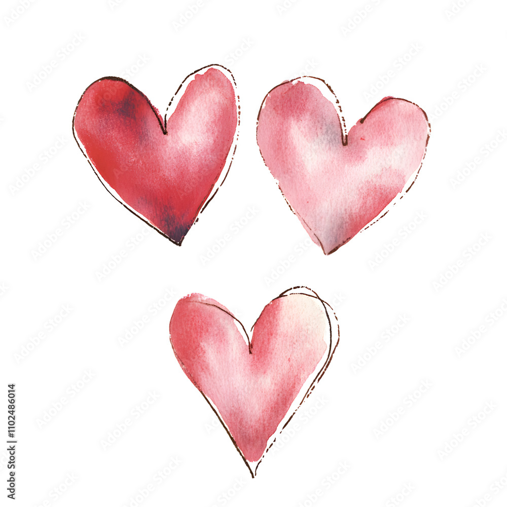 Three Watercolor Painted Red Hearts With Artistic Brush Wallpaper Mural - Decorly Solutions | Decorly Solutions
