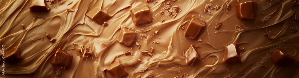 A Close-up Of Smooth Chocolate With Caramel Pieces Wallpaper Mural - Decorly Solutions | Decorly Solutions