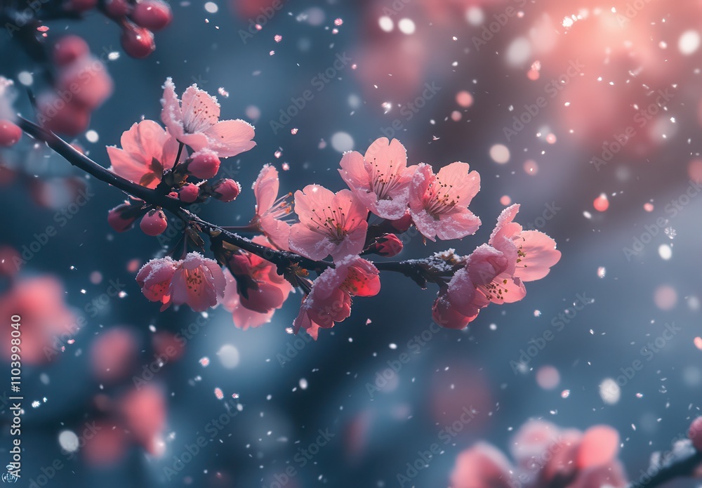 Beautiful Cherry Blossom Flowers in the Snow During a Tranqu Wallpaper