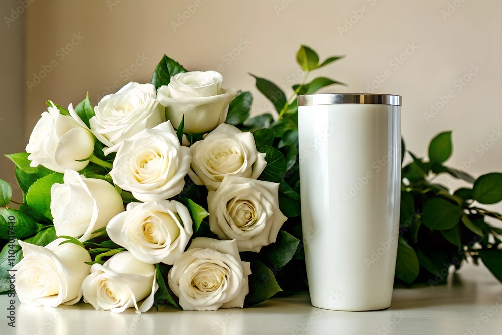 White Tumbler Mockup With A Bouquet Of Elegant Wallpaper Mural - Decorly Solutions | Decorly Solutions