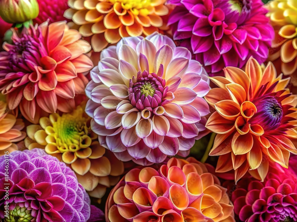 Stunning Close-up Dahlia Bouquet Floral Arrangement Vibrant Colors Wallpaper Mural - Decorly Solutions | Decorly Solutions