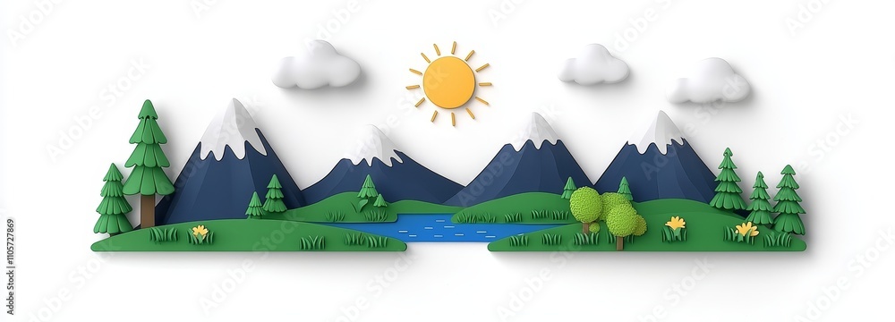 A Graphic Illustration Of A Mountain Lake Near Wallpaper Mural - Decorly Solutions | Decorly Solutions
