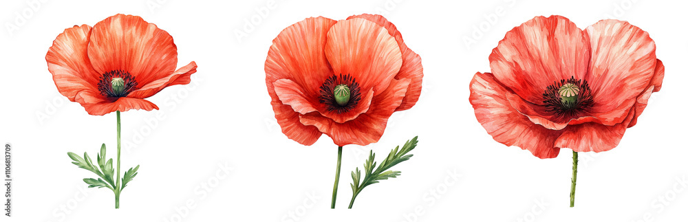 Vibrant Red Poppies On A Transparent Background Isolated Wallpaper Mural - Decorly Solutions | Decorly Solutions