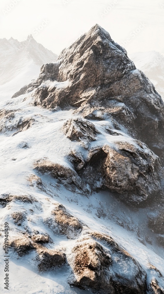 Close Up of Rocky Mountain Peaks with Icy Cliffs and Snow Drifts Snow Covered Mountains and Peaks ,Winter seasson, Happy New Year, Happy christmass