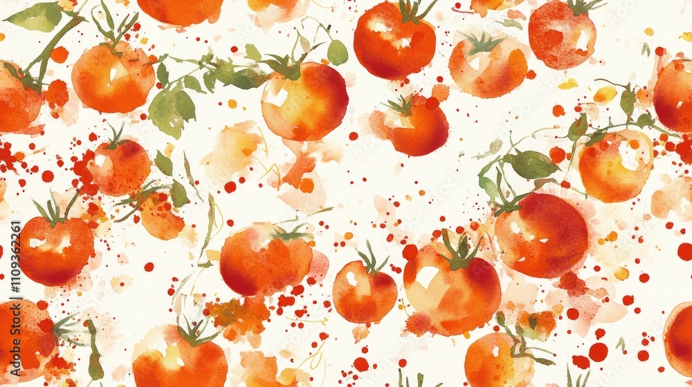 Seamless hand drawn tomato pattern featuring watercolor spla Wallpaper