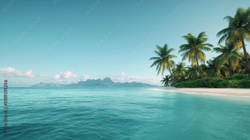 Serene Tropical Beach With Clear Water And Lush Wallpaper Mural - Decorly Solutions | Decorly Solutions