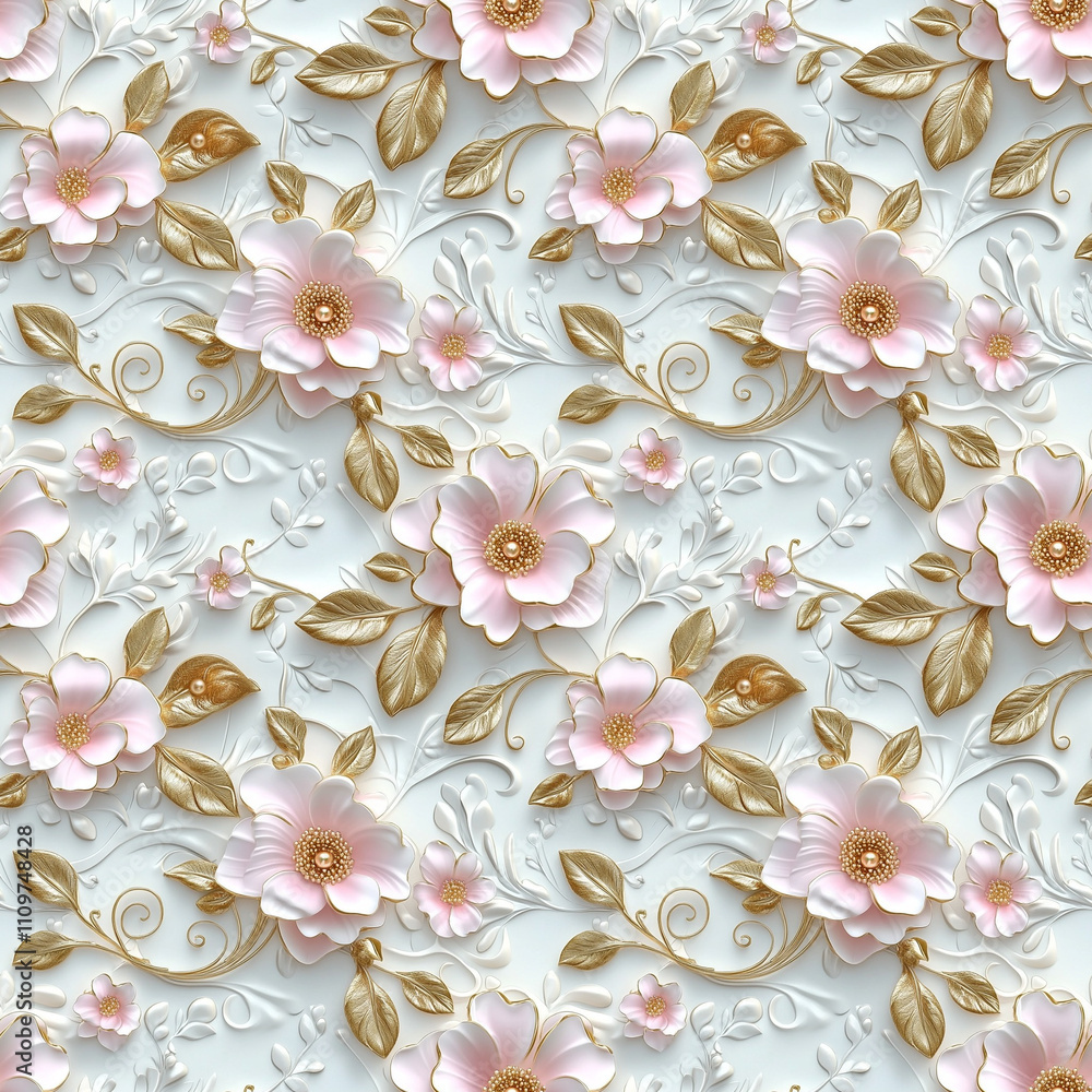 Seamless Floral Pattern With Pastel Pink Flowers And Wallpaper Mural - Decorly Solutions | Decorly Solutions