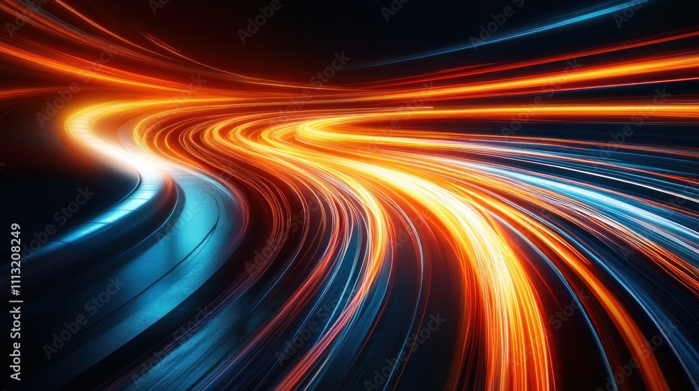 Dynamic flow of light trails, visualizing high speed and futuristic transit