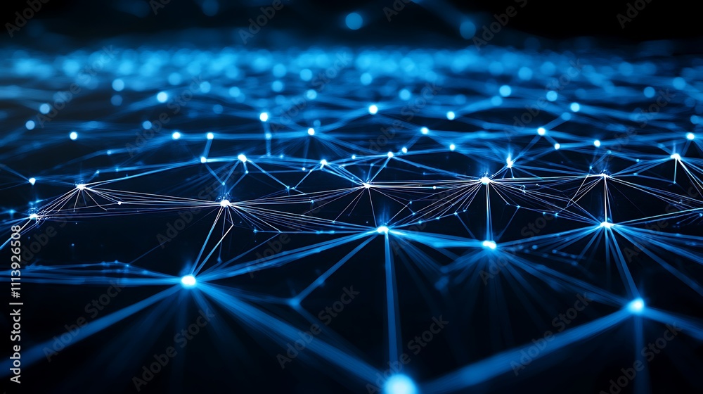 Futuristic Abstract Network Connection Blue Light Design With Wallpaper Mural - Decorly Solutions | Decorly Solutions