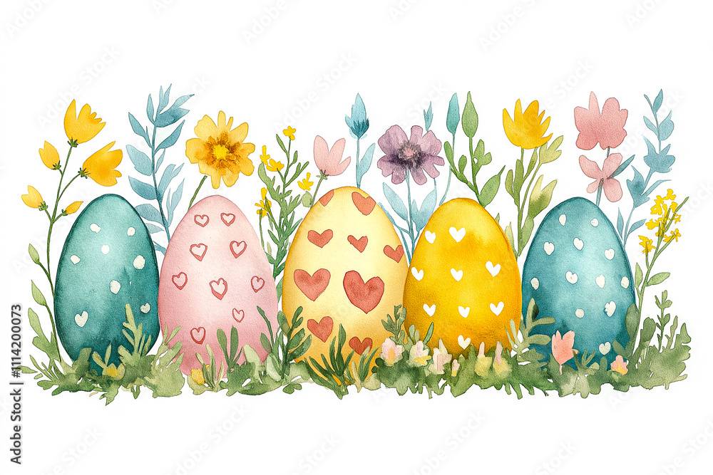 Watercolor Painting Of Cute Easter Eggs Surrounded By Wallpaper Mural - Decorly Solutions | Decorly Solutions