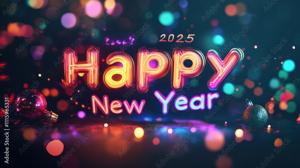 Vibrant 2025 Happy New Year Typography Glowing With Wallpaper Mural - Decorly Solutions | Decorly Solutions