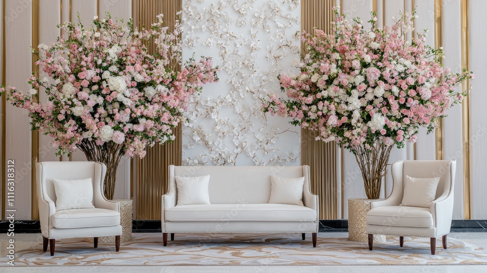 A Stylish Interior Scene Featuring Elegant Seating Flanked Wallpaper Mural - Decorly Solutions | Decorly Solutions