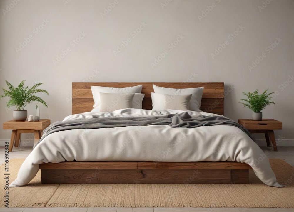 Minimalist Wooden Bed Frame With Natural Linen Bedding Wallpaper Mural - Decorly Solutions | Decorly Solutions